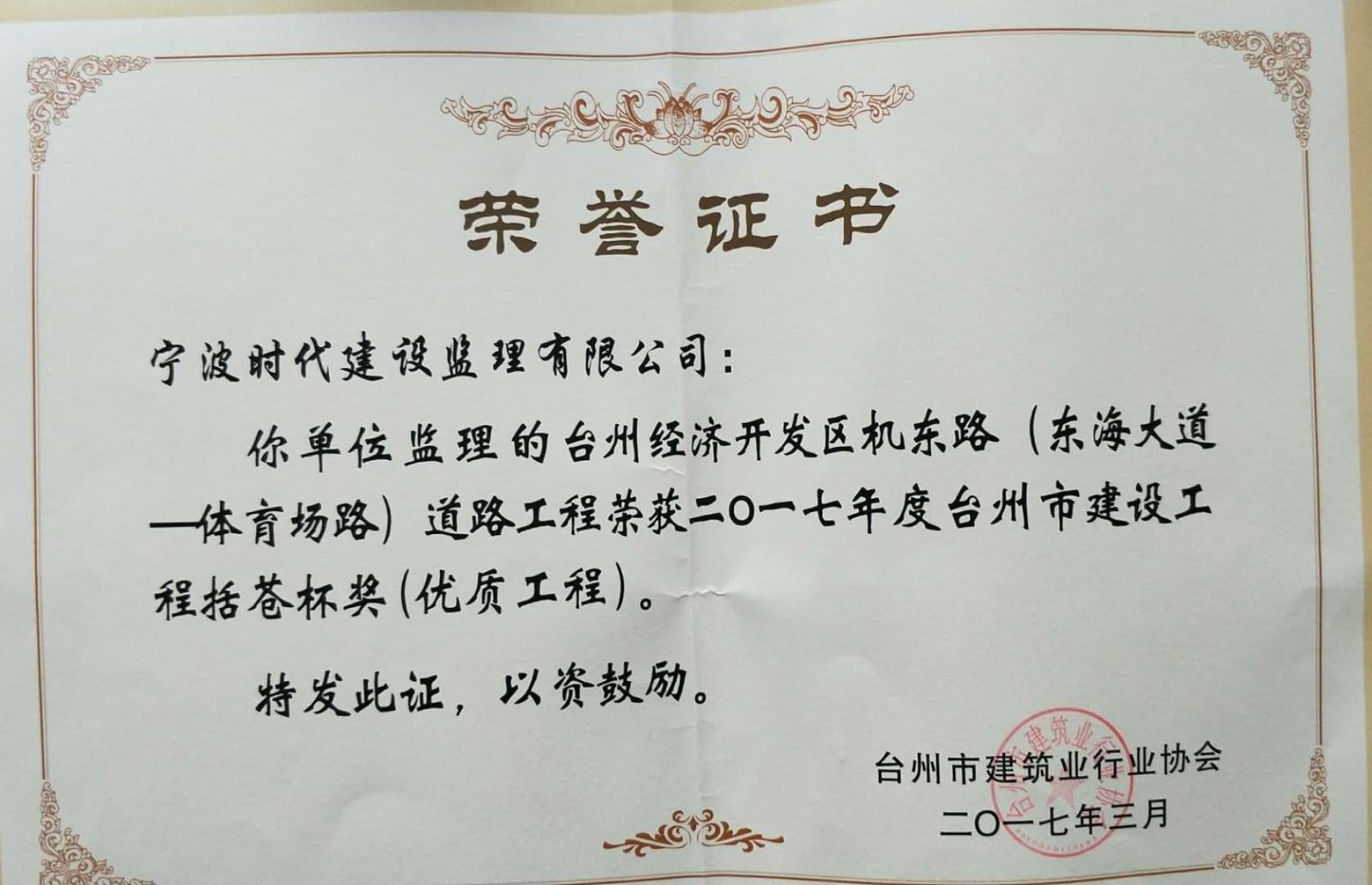 優秀監理企業證書